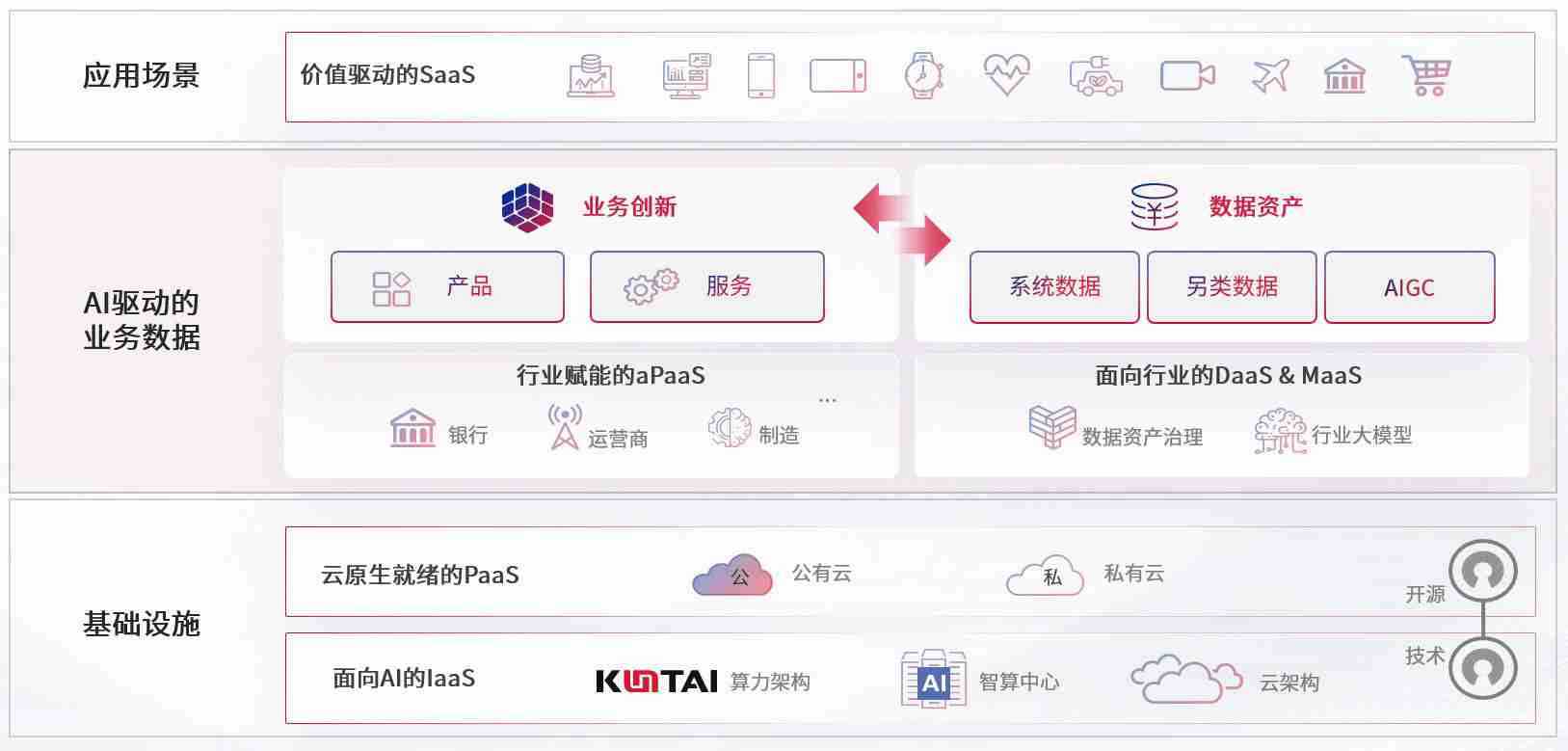 数字时代,,,,围绕企业数字化转型的关键要素,,,,大资本210cc数码开创性的提出数云融合战略和技术体系框架,,,着力在云原生、、数字原生、、、AI原生和信创产业上架构产品和服务能力,,为处在不同数字化转型阶段的快消零售、、、、汽车、、、金融、、、医疗、、、政企、、、教育、、运营商等行业客户提供泛在的敏捷IT能力和融合的数据驱动能力,,,,构建跨界融合创新的数字业务场景和新业务模式,,,助力企业级客户建立面向未来的核心能力和竞争优势,,,,全面推动社会的数字化、、、、智能化转型升级。。。