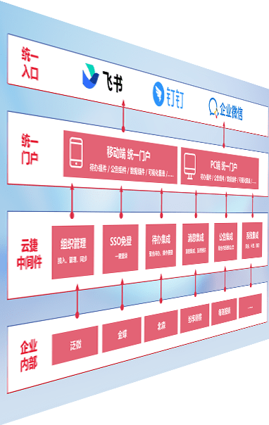对协作平台提供支持服务,,,,支持企业应用与协作平台对接,,,包含组织同步、、、消息集成、、待办集成等。。支持目前主流的协作平台:钉钉、、、企微和飞书。。。