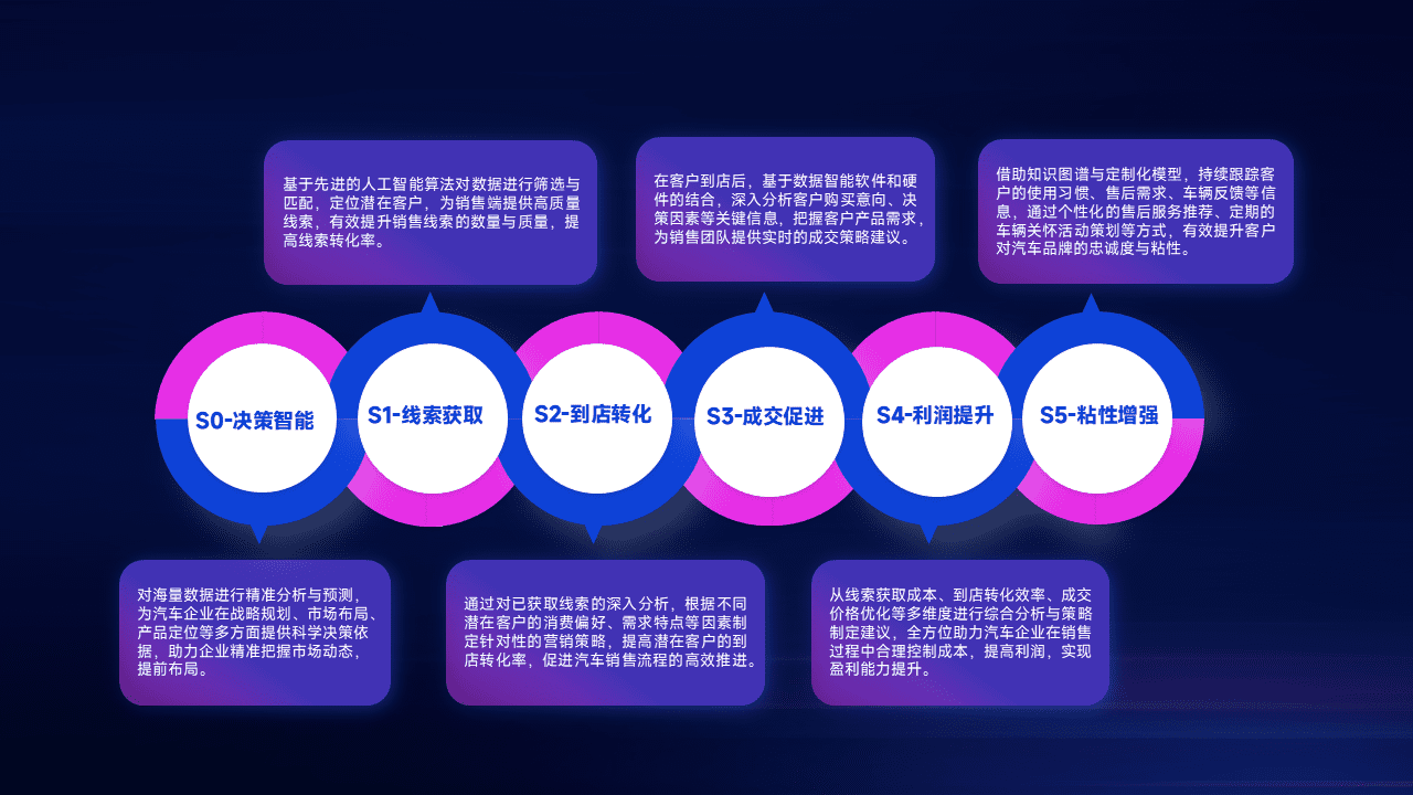通过拓宽潜在客户来源、、、、优化线索分配并提高到店转化率,,,,以增强销售效率。。。。同时,,,利用线索数据不断优化分析模型,,,,有效提升转化率,,扩大营销影响力。。。